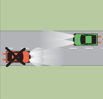 I dimma eller kraftig nederbörd ska du använda halvljus eller dimljus, dock inte tillsammans. I gryning, skymning eller mörker kan helljus också användas men det försämrar ofta sikten. Du får använda dimBAKljus om sikten är kraftigt nedsatt, men inte så att bakomvarande förare bländas. |