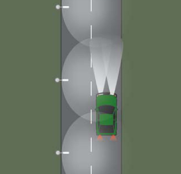 På vägar med tillfredsställande belysning ska du använda halv- ljus. Det räcker inte med par- keringsljus eller annat ljus. När du parkerar på en väg med tillfredsställande belysning behöver parkeringsljuset inte vara tänt. |